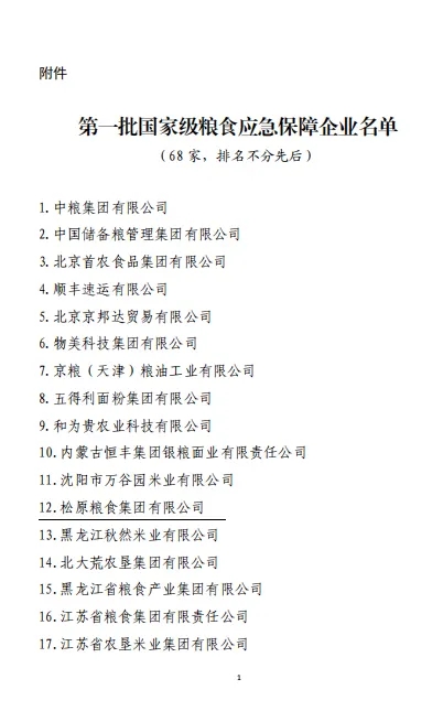 松粮集团作为吉林省唯一一家企业被国家粮食和物资储备局认定为第一批“国家级粮食应急保障企业”(68家),迎来首次现场核查。