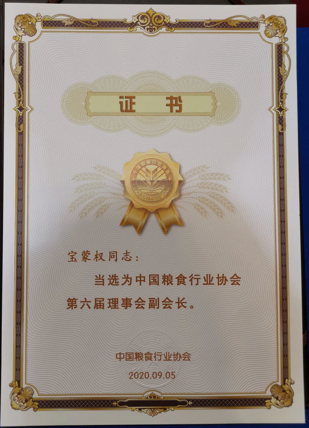 9月5日上午,中国粮食行业协会第六届会员代表大会、六届一次理事会暨六届一次常务理事会议在北京盛大召开。国家粮食和物资储备局党组成员、副局长卢景波到会并致辞。在第六届理事会换届选举中,吉林省粮食行业协会会长、松原粮食集团有限公司党支部书记、董事长宝蒙权同志,光荣当选为中国粮食行业协会第六届理事会副会长,松原粮食集团有限公司同时推选为第六届理事会副会长单位。